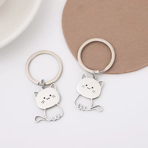 Karikatür yavru anahtarlık titanyum çelik basit moda kedi çift özelleştirilebilir Logo karabina Metal anahtarlık